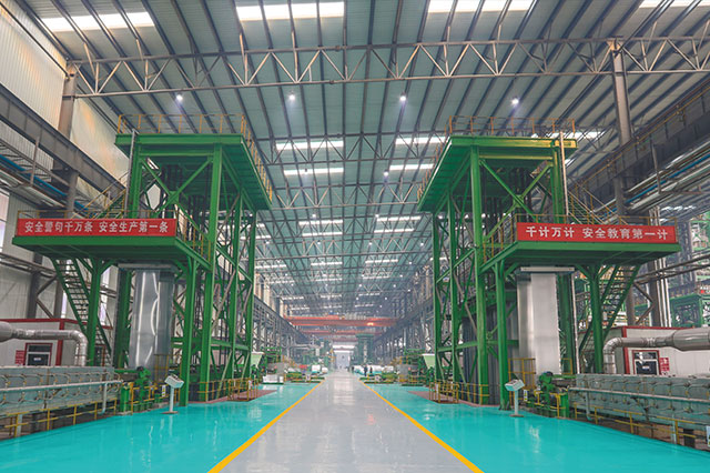 公司擁有1420酸洗冷軋聯(lián)合機(jī)組(PL-TCM)一套,機(jī)械由中國一重及中冶南方共同設(shè)計制造,電氣采用上海寶信軟件自動化控制系統(tǒng),機(jī)組設(shè)備配置合理,整體裝備達(dá)到國內(nèi)一流水平。機(jī)械設(shè)備涵蓋激光焊接設(shè)備、噴射紊流式酸洗設(shè)備、高精度雙塔式切邊設(shè)備(SMS)、五機(jī)架竄輥式UCM連軋機(jī)、新型回轉(zhuǎn)式雙卷筒卷取機(jī),軋機(jī)電氣采用秒流量控制系統(tǒng)。